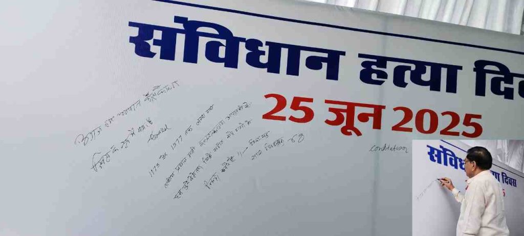 बता दें कि भाजपा ने बुधवार को जिला मुख्यालय बेमेतरा के मंडी प्रांगण में संविधान काला दिवस मनाया. इस दौरान मंत्री दयालदास बघेल कार्यक्रम का नाम ही भूल गए, इसे लेकर अब उनकी किरकिरी हो रही है. इस मौके पर मंत्री दयालदास बघेल ने व्हाइट बोर्ड में आपातकाल को लेकर भी ठीक से नहीं लिख पाए. कार्यक्रम में साजा विधानसभा के विधायक ईश्वर साहू, विधायक दीपेश साहू भी मौजूद थे.