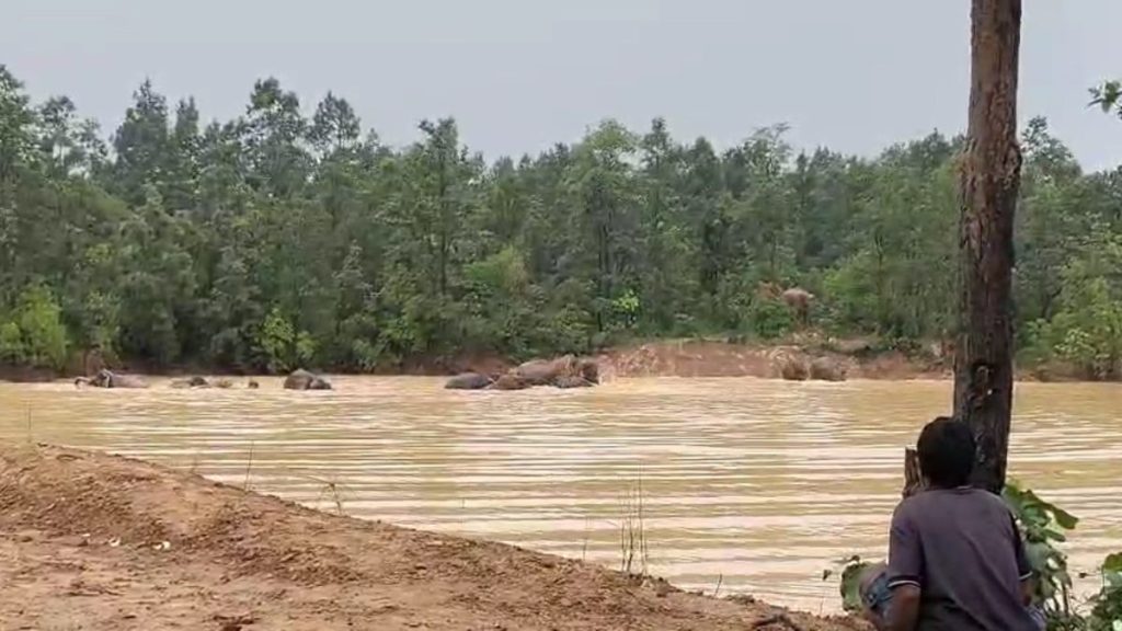 मनोज यादव, कोरबा। करतला क्षेत्र का जंगल हाथियों के झुंड के चिंघाड़ से शुक्रवार को गुंज उठा। हाथियों का झुंड स्टॉप डेम में नहाते और किसान के खेत में फसल रौंदते हुए देखा गया। इसके बाद झुंड आराम करता भी नजर आया, जिसे ग्रामीणों ने ड्रोन वीडियो में कैद किया। वन विभाग भी इस पर नजर बनाए हुए है। इलाके में करीब 50 हाथी रामपुर-करतला के जंगलों में विचरण कर रहे हैं, जिससे ग्रामीणों में दहशत का माहौल बना हुआ है।