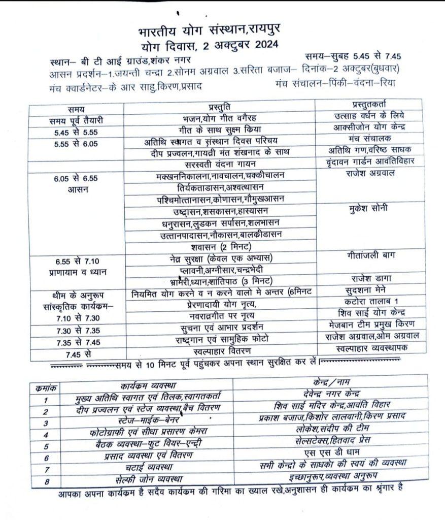 कार्यक्रम के अंत में आने वाले नवरात्रि पर शानदार नृत्य और प्रेरणादायक योग नृत्य शिव साईं हनुमान मंदिर केंद्र और ऑक्सिजोन केंद्र के साधकों ने सभी में ऊर्जा का संचार कर दिया. अंत में राष्ट्रगान और स्वल्पाहार के साथ कार्यक्रम का समापन हुआ. कार्यक्रम को सफल बनाने में भावना खत्री, राजेश अग्रवाल, हेमंत, काशीराम, प्रांजल, कंवलजीत, लता चौधरी, नीलम नवलानी, पूनम गेही, किरणप्रसाद, अंकिता नवलानी, रेखाप्रकाश बजाज, ए एस राव, पवनअक्षय सुद, ममता, गीता, अनिता, सपना शादिजा, सोनिया, जयाके आर साहू और फोटोग्राफी टीम में मितेश, लोकेश, संदीप हर्षपाल ने महत्वपूर्ण योगदान दिया.