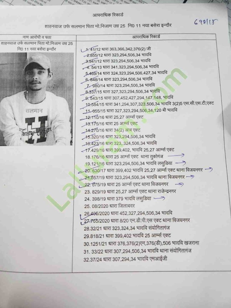 सलमान लाला का नाम इंदौर में एमडी ड्रग्स तस्करी और अवैध हथियारों की सप्लाई के नेटवर्क में था। हाल ही में क्राइम ब्रांच ने उसके साथियों अरुण डार्लिंग, सद्दू उर्फ शादाब, कुलदीप साल्दे और सौरभ राठौड़ को गिरफ्तार किया था।