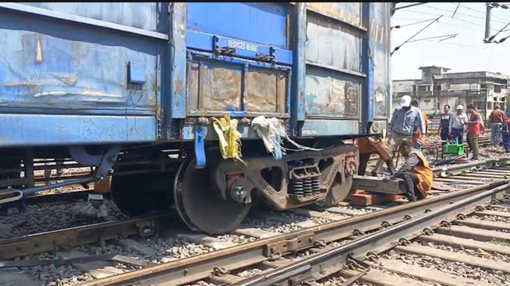नितिन नामदेव, रायपुर। रायपुर रेलवे स्टेशन के ठीक पहले मालगाड़ी के दो रैक पटरी से उतर गए. सुबह करीब सात बजे घटित घटना से दो ट्रेक पर ट्रेनों की आवाजाही प्रभावित हुई है. स्थिति को देखते हुए ट्रेनों को प्लेटफार्म पांच और छह से डायवर्ट कर चलाया जा रहा है.