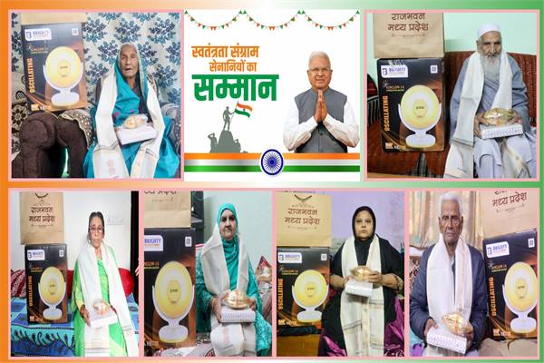 राज्यपाल मंगूभाई पटेल ने स्वतंत्रता संग्राम सेनानियों को उनके घर पर सम्मानित कराया। गवर्नर की ओर से लोकभवन के अफसरों ने भोपाल निवासी स्वतंत्रता संग्राम सेनानियों के घर पहुंचकर उनका सम्मान किया। भोपाल निवासी स्वतंत्रता संग्राम सेनानी मोहम्मद जमीर, सावित्री देवी वर्मा, देवीशरण, पार्वती देवी और नारायणी देवी को सम्मान स्वरूप शॉल, श्रीफल, मिठाई, और उपहार भेंट किए गए। इसी तरह स्वर्गीय स्वतंत्रता संग्राम सेनानी स्व. हबीब नज़र की पत्नी फिरोज़ जहां और स्व. मोहम्मद मुख्तार खान की पत्नी अख्त़र जहां का सम्मान भी उनके निवास पर किया गया।