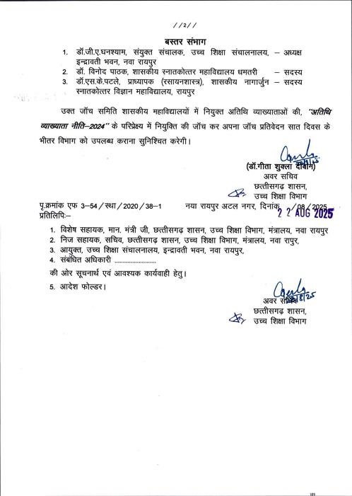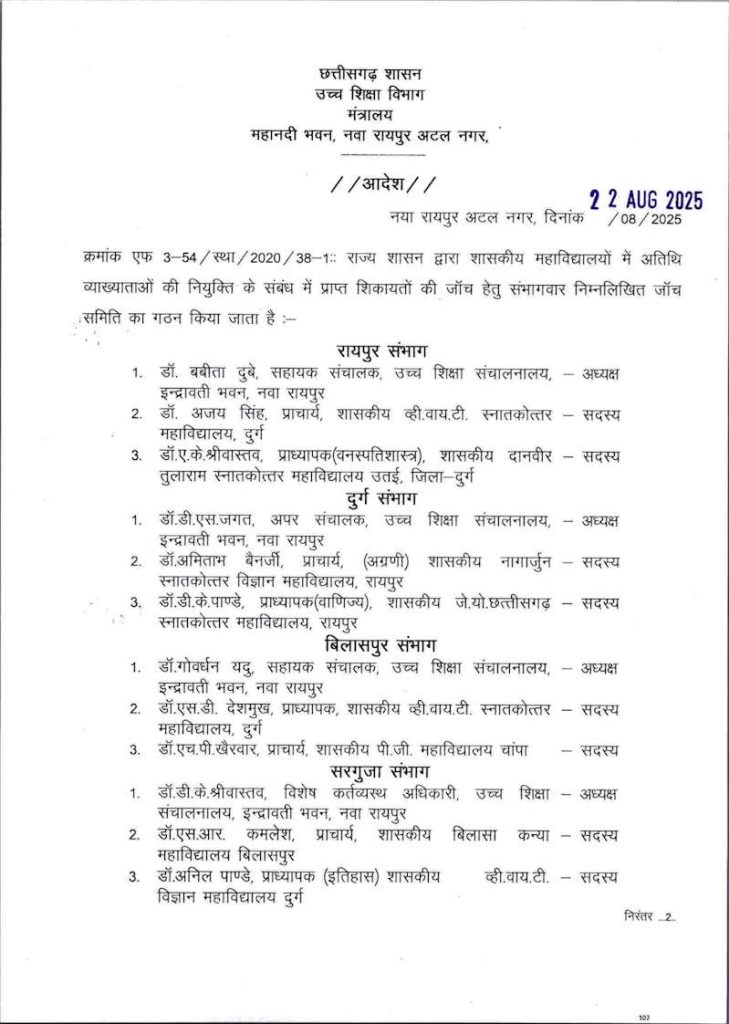 वहीं उच्च शिक्षा विभाग की ओर से दो आदेश जारी किए गए हैं. एक आदेश जाँच समिति गठन और सदस्यों को लेकर और दूसरा आदेश भर्ती प्रकिया पर रोक को लेकर है. विभाग ने 7 दिनों के भीतर जाँच रिपोर्ट प्रस्तुत करने को कहा है. वहीं जिन कॉलेजों में नियुक्ति हो गई उस पर रोक नहीं होने की बात कही है.