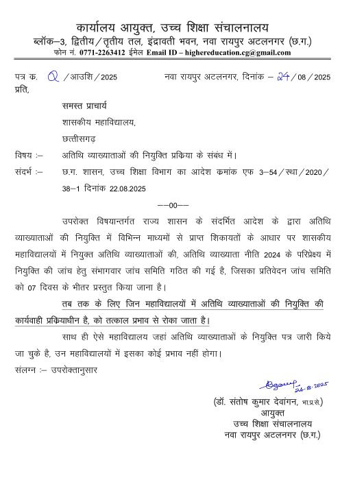 उच्च शिक्षा विभाग की ओर से जारी आदेश