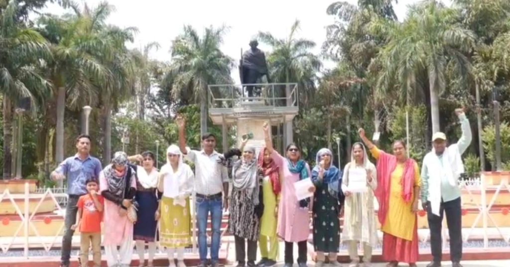 मंगलवार को राष्ट्रपिता महात्मा गांधी की फूलबाग स्थित प्रतिमा पर बड़ी संख्या में ANM एकत्रित हुई। जहां विभाग की दोहरी नीति के खिलाफ महात्मा गांधी की प्रतिमा को ज्ञापन सौंपकर सद्बुद्धि की कामना की गई। इस प्रदर्शन के जरिये आरोप है कि एमपी स्वास्थ्य आयुक्त महोदय संचनालय स्वास्थ्य सेवाएं लोक स्वास्थ्य एवं चिकित्सा शिक्षा विभाग की ओर से प्रदेश के सभी सीएमएचओ को 11 जून 2025 को आदेश जारी किया गया था। इसके तहत 13 जून 2025 से सभी जिलों में बहुउद्देशीय स्वास्थ्य कार्यकर्ता एएनएम के दस्तावेज परीक्षण कर नियुक्ति पत्र दिए जाने थे। लेकिन यह प्रकिया सिर्फ इंदौर उज्जैन डिवीजन के आसपास के 18 जिलों में की गई।