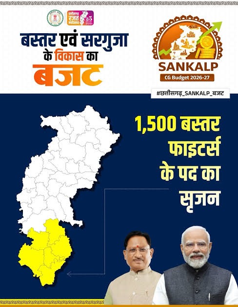 मुख्यमंत्री विष्णुदेव साय के नेतृत्व में प्रस्तुत यह SANKALP बजट सरकार समावेशी विकास, क्षेत्रीय संतुलन, अधोसंरचना निर्माण, मानव संसाधन विकास और सांस्कृतिक संरक्षण को साथ लेकर चलने वाली है।