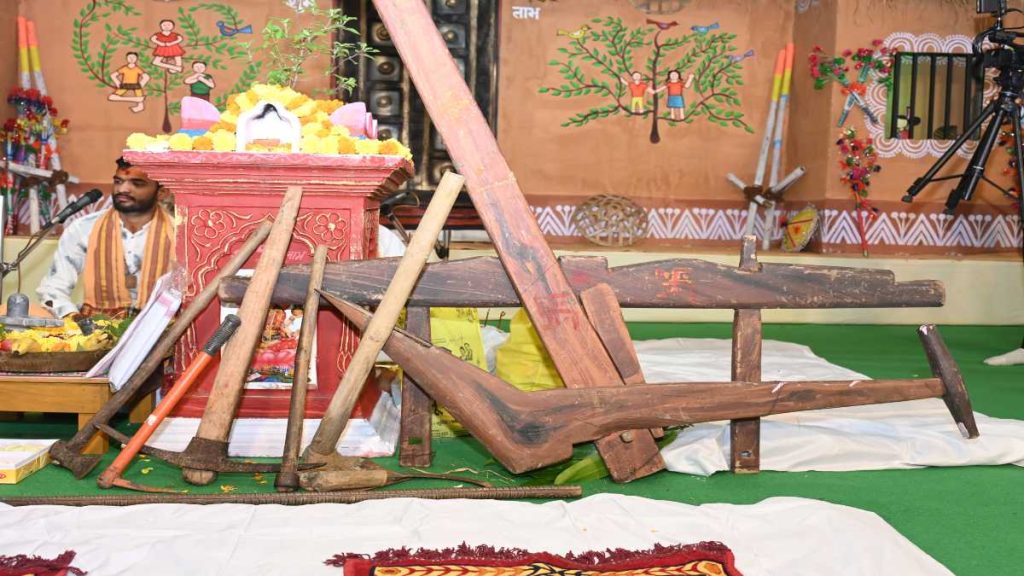 मुख्यमंत्री विष्णुदेव साय ने खेती किसानी के कामों में उपयोग होने वाले नांगर, रापा, कुदाल व दूसरे कृषि यंत्रों की विधिवत पूजा-अर्चना कर हरेली उत्सव का शुभारंभ किया। इस मौके पर मुख्यमंत्री साय ने प्रदेश के किसानों समेत समस्त छत्तीसगढ़ वासियों की ख़ुशहाली एवं सुख-समृद्धि की कामना की।