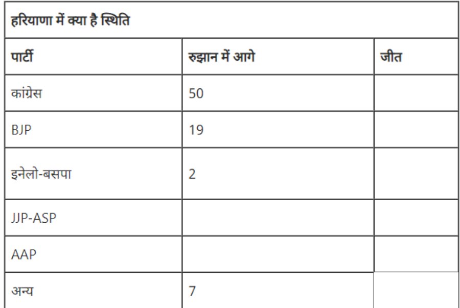 सूबे में 67.90 फीसदी मतदान हुआ. इस बार बीजेपी को राज्य में जीत की हैट्रिक की उम्मीद है जबकि कांग्रेस एक दशक बाद सत्ता में वापसी की उम्मीद कर रही है। इस चुनाव में मुख्य रूप से बीजेपी, कांग्रेस, आम आदमी पार्टी, इनेलो-बसपा और जेजेपी-आजाद समाज पार्टी शामिल हैं।