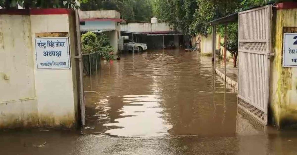 ग्वालियर में सुबह से ही लगातार बारिश हो रही है। जिससे पूरा शहर जलमग्न हो गया है। बारिश की वजह से कई इलाकों में जलभराव की स्थिति है। इतना ही नहीं रेस कोर्स रोड स्थित एमपी विधानसभा अध्यक्ष नरेंद्र सिंह तोमर के बंगले में पानी भर गया।