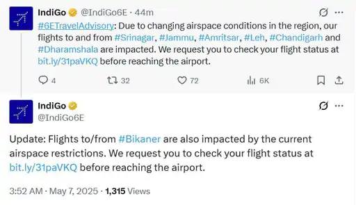 - 6E-7742 (जयपुर-चंडीगढ़) – 5:50 AM