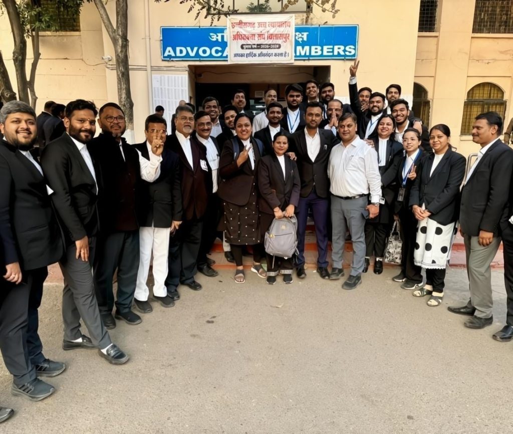 वीरेन्द्र गहवई, बिलासपुर। छत्तीसगढ़ उच्च न्यायालय अधिवक्ता संघ निर्वाचन वर्ष 2026–2028 के चुनाव में रजनीश सिंह बघेल ने अध्यक्ष पद पर जीत हासिल की है। युवा अध्यक्ष के हाथ हाईकोर्ट बार की कमान आने से युवा अधिवक्ताओं में भारी उत्साह है। परिणाम आते ही अधिवक्ताओं के बीच जबरदस्त उत्साह नजर आया। कड़ी टक्कर के बीच रजनीश सिंह बघेल ने जीत दर्ज की है।