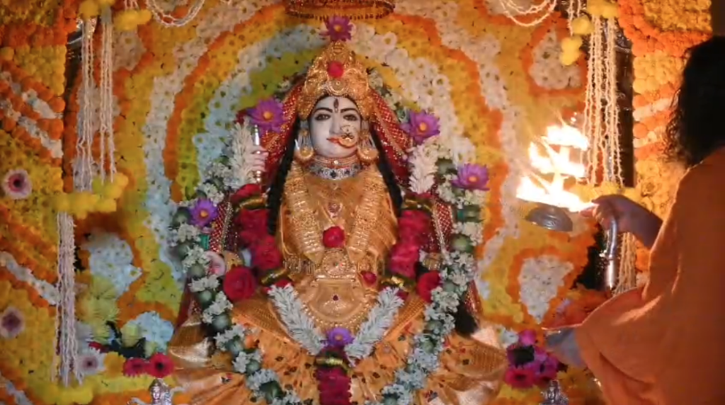 नरसिंहपुर में मां त्रिपुर सुंदरी का फूलों से श्रृंगार