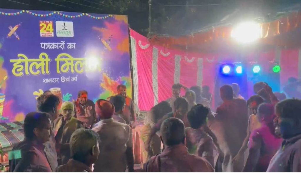 रायपुर. लल्लूराम डॉट काम और न्यूज 24 मध्यप्रदेश-छत्तीसगढ़ की ओर से होली मिलन समारोह का आयोजन किया गया. यह आयोजन का आठवां साल रहा. कार्यक्रम में डिप्टी सीएम अरुण साव, स्वास्थ्य मंत्री श्यामबिहारी जायसवाल समेत कई जनप्रतिनिधि एवं संस्था के चेयरमैन नमित जैन, एडिटोरियल डायरेक्टर मनोज बघेल, रेजिडेंट एडिटर आशीष तिवारी, राजनीतक संपादक वैभव शिव पांडेय समेत संस्था के सभी पत्रकार, कर्मचारी एवं बड़ी संख्या में राजधानी के पत्रकार शामिल हुए. इस दौरान नगाड़े की धुन एवं फाग गीतों पर सभी जमकर झूमें.