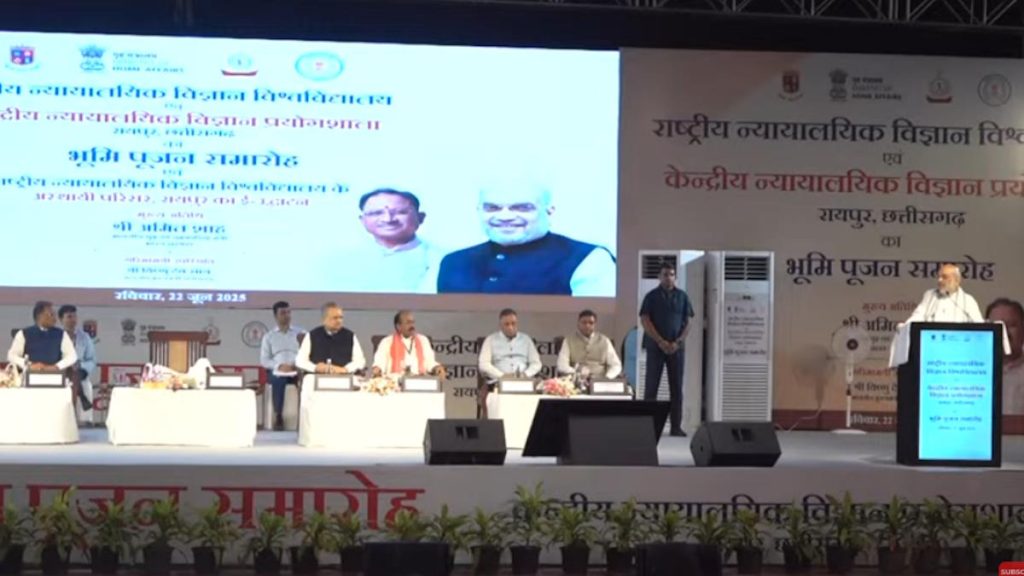 आज छत्तीसगढ़ की क्रिमिनल जस्टिम सिस्टम के लिए बहुत बड़ा दिन है. क्योंकि आज एक प्रकार से तीन नई शुरुआत छत्तीसगढ़ क्रिमिनल सिस्टम को आधुनिक बनाने के लिए हो रही है. नेशनल फॉरेसिंक साइंस यूनिवर्सिटी की नींव रखने का काम, सेंट्रल फारेंसिंक साइंस लेबोरेटरी की नींव नया रायपुर में रखी गई है, और जब तक एनएफएसयू का नया बिल्डिंग तैयार हो, तब तक अस्थाई परिसर की भी आज शुरूआत हुई है.