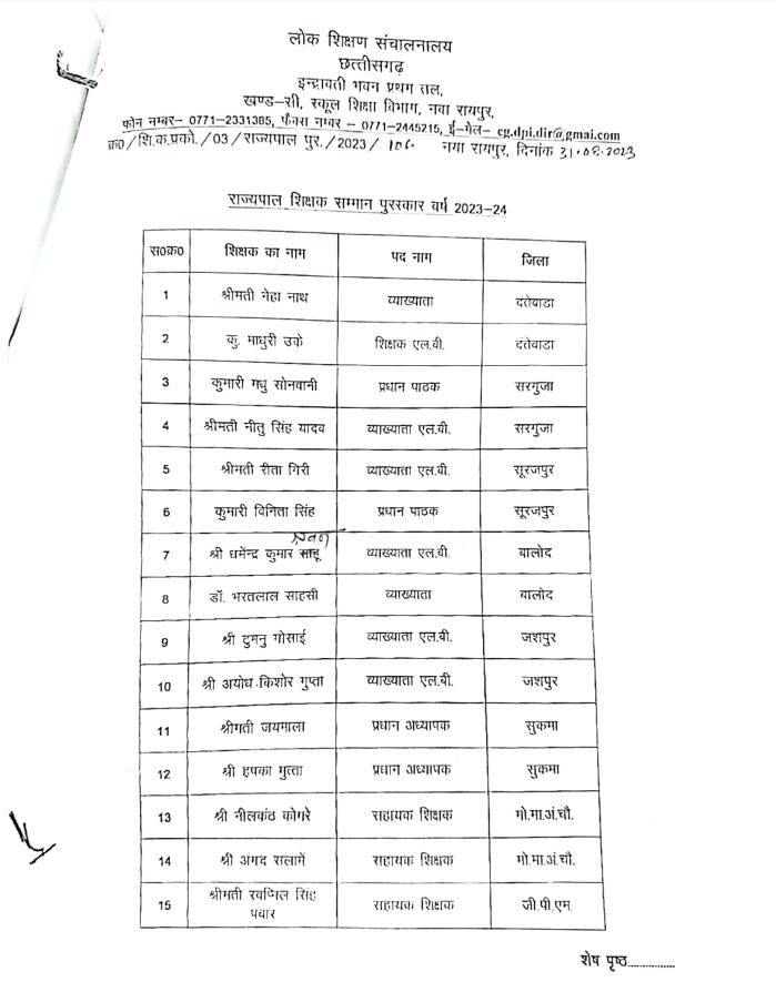 इन शिक्षकों को सम्मानित करेंगे राज्यपाल