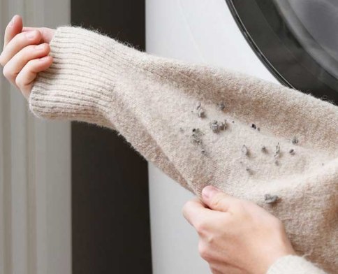 नहाने वाली प्यूमिक स्टोन को हल्के हाथ से कपड़े पर रगड़ें. रुए सतह से अलग होकर हट जाते हैं. बाद में ब्रश से कपड़े को झाड़ लें.