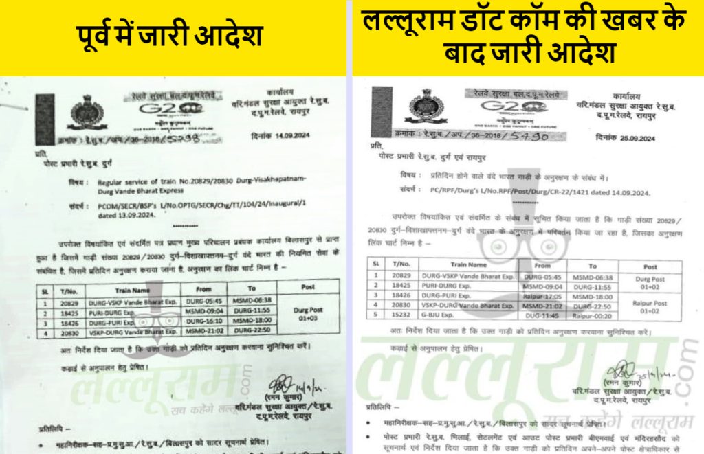 देंखे RPF कमांडेंट द्वारा पहले और Lalluram की खबर छापने के बाद का आदेश