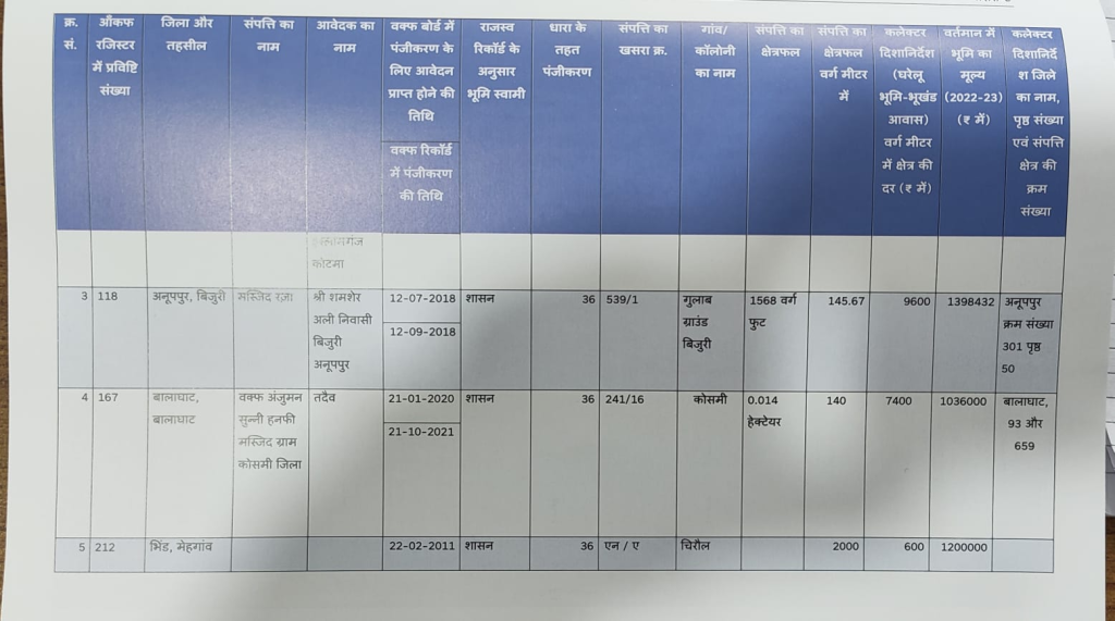 राकेश चतुर्वेदी, भोपाल। मध्य प्रदेश में सरकारी संपत्तियों पर वक्फ बोर्ड के कब्जे का बड़ा मामला सामने आया है। नियंत्रक एवं महालेखापरीक्षक (CAG) की ताजा रिपोर्ट में खुलासा हुआ है कि राज्य के 20 जिलों में कुल 77 करोड़ रुपये मूल्य की 33 सरकारी संपत्तियां वक्फ बोर्ड के नाम रजिस्टर्ड कर ली गई हैं। ये संपत्तियां मूल रूप से सरकारी दस्तावेजों में दर्ज थीं, लेकिन वक्फ बोर्ड ने इन्हें अपनी संपत्ति के रूप में दर्ज करा लिया।