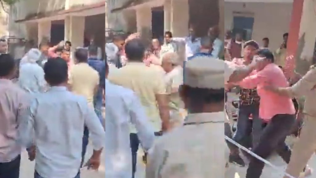अमेठी. सीओ ऑफिस अमेठी के सामने सपा नेता शिव प्रताप यादव के बेटे प्रदीप यादव और उनके समर्थकों द्वारा मिलकर बुजुर्ग और उसके बेटे को पीटने का मामला सामने आया है. अब इस मारपीट का वीडियो वायरल हो रहा है. दावा किया जा रहा है कि वीडियो में सपा नेता और उसके समर्थक मारपीट कर रहे हैं. वीडियो में देखा जा सकता है कि किस तरह नेता और उसके लोग युवक और उसके पिता को पीट रहे हैं. पुलिस छुड़ाने का प्रयास करती रही और इधर मारपीट चालू रही.