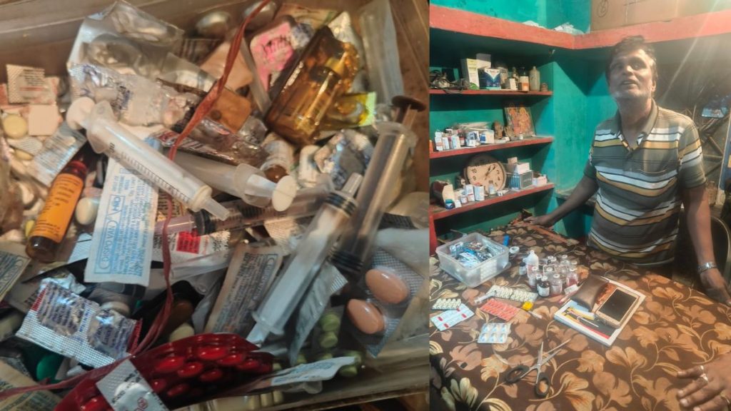 पुरुषोत्तम पात्र, गरियाबंद। छत्तीसगढ़ के कई जिलों में अवैध क्लीनिकों में लोगों के स्वास्थ्य के साथ खिलवाड़ का काम धड़ल्ले से जारी है। कई बार ऐसे मामले भी सामने आए हैं जिनमें झोलाछाप डॉक्टरों की लापरवाही के चलते मरीजों को अपनी जान तक गंवानी पड़ी है। कुछ इसी तरह जिले के कई इलाकों में चल रहे अवैध क्लिनिकों को आज एंटी-क्वेकरी टीम ने छापामार कार्रवाई करते हुए सील किया है। हैरानी की बात यह है कि इनमें से कई क्लिनिकों में झोला छाप संचालक बिना डिग्री और वैधानिक दस्तावेज के प्रतिबंधित दवाओं का इस्तेमाल कर रहे थे। एंटी-क्वेकरी टीम ने कार्रवाई के दौरान गर्भपात की प्रतिबंधित दवाइयां भी बरामद की हैं।