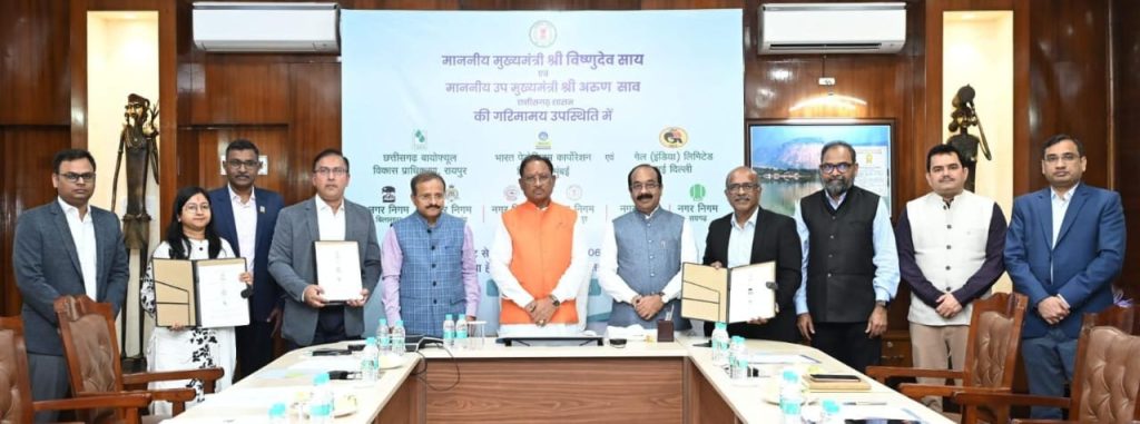 रायपुर. छत्तीसगढ़ ने स्वच्छ पर्यावरण और नेट जीरो एमिशन के लक्ष्य को पाने की दिशा में बड़ी पहल की है. मुख्यमंत्री विष्णु देव साय ने आज मुख्यमंत्री निवास कार्यालय में नगरीय ठोस अपशिष्ट से कंप्रेस्ड बायोगैस उत्पादन के लिए छत्तीसगढ़ बायोफ्यूल विकास प्राधिकरण, गेल इंडिया लिमिटेड, भारत पेट्रोलियम और प्रदेश के 6 नगर निगमों के बीच ऐतिहासिक त्रिपक्षीय एमओयू संपन्न होने के अवसर पर यह बात कही. मुख्यमंत्री ने सभी संस्थाओं को इस विशेष एमओयू के लिए शुभकामनाएं दी और कहा कि यह कदम स्वच्छता, ऊर्जा उत्पादन और सतत विकास के क्षेत्र में छत्तीसगढ़ को एक नई पहचान दिलाएगी.