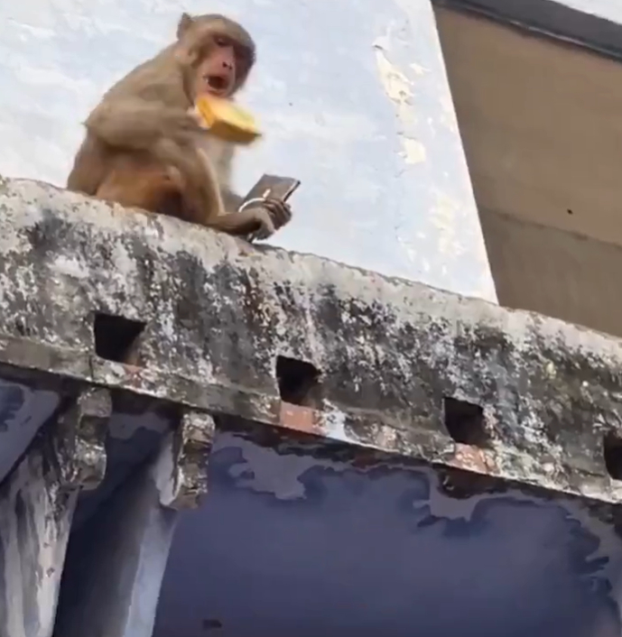 अब आप ये ना समझिएगा कि एक फ्रूटी के बदले आपको नया फोन मिल जाएगा. जी नहीं. आप कभी वृंदावन गए हो या ना गए हों, लेकिन आपने यहां के बंदरों और उनके कारनामों के बारे में तो जरूर सुना होगा. ऐसा ही वीडियो सोशल मीडिया में वायरल हो रहा है. जिसमें आपको इस ‘खास ऑफर’ का जीता जागता उदाहरण दिखाई पड़ेगा. वीडियो में एक चालाक बंदर ने लोगों को हैरान कर दिया, जब उसने एक Samsung S25 Ultra स्मार्टफोन चुरा लिया और उसे लेकर छज्जे पर चढ़ गया. हालांकि बाद में उसने उसे फ्रूटी के बदले फोन वापस कर दिया. ये वृंदावन के लिए आम बात है.
