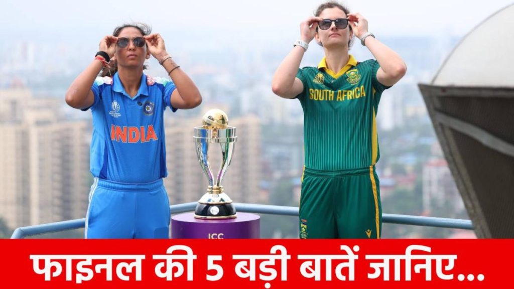 IND-W vs SA-W Final: भारत और साउथ अफ्रीका के बीच महिला वनडे विश्व कप 2025 का फाइनल खेला जाना है. यह दोनों ही टीमें कभी ट्रॉफी नहीं जी सकीं. मैच मुंबई के डीवाई पाटिल स्टेडियम में दोपहर 3:00 बजे से खिताबी जंग शुरू होगी. इससे पहले जानिए इस फाइनल से जुड़ी 5 बड़ी बातें.