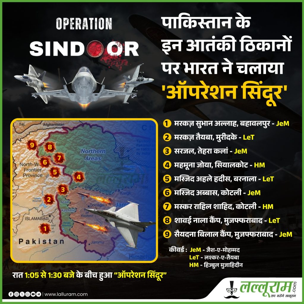पहलगाम आतंकी हमले के 15 दिन बाद 6 और 7 मई की दरमियानी रात भारतीय सेना ने पाकिस्तान और PoK में एयर स्ट्राइक की। 25 मिनट में 9 आतंकी ठिकाने तबाह कर दिए थे। 100 से ज्यादा आतंकियों को ढेर कर दिया। यहीं आतंकियों को ट्रेनिंग दी जाती थी। एयर स्ट्राइक में जैश-ए-मोहम्मद चीफ मसूद अजहर की फैमिली के 14 लोग भी मारे गए।