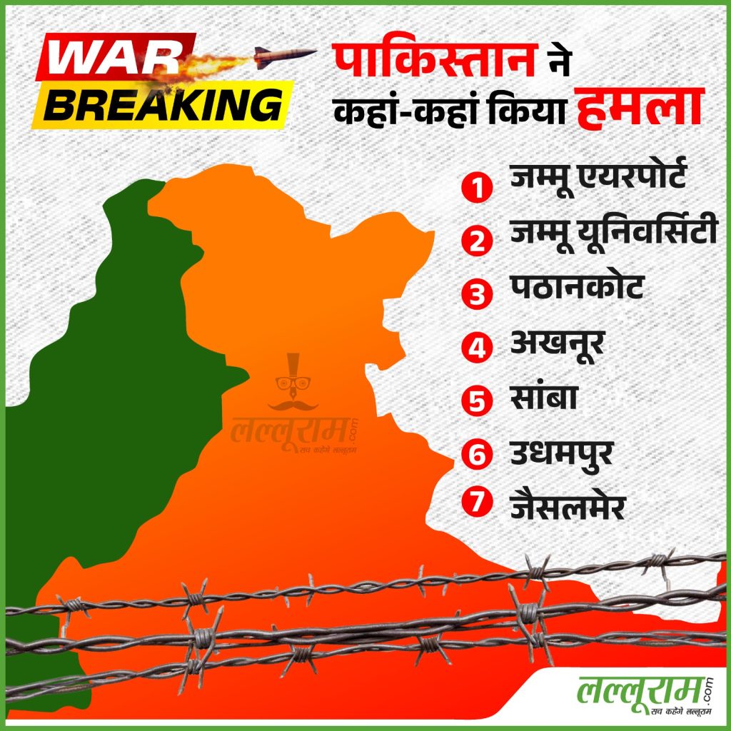 भारत की कार्रवाई के बाद बौखलाए पाकिस्तान ने जवाब में पाकिस्तान ने बुधवार-गुरुवार (7-8 मई) की रात जम्मू-कश्मीर, गुजरात, राजस्थान और पंजाब में 15 भारतीय सैन्य ठिकानों पर मिसाइल और ड्रोन हमले किए, जिसे भारतीय में तैनात S-400 एयर डिफेंस सिस्टम ने नाकाम कर दिया। इसके बाद गुरुवार 8 मई की सुबह से ही उसने जम्मू-कश्मीर, पंजाब और राजस्थान के सीमावर्ती इलाकों में पर मिसाइल और ड्रोन हमले किए।