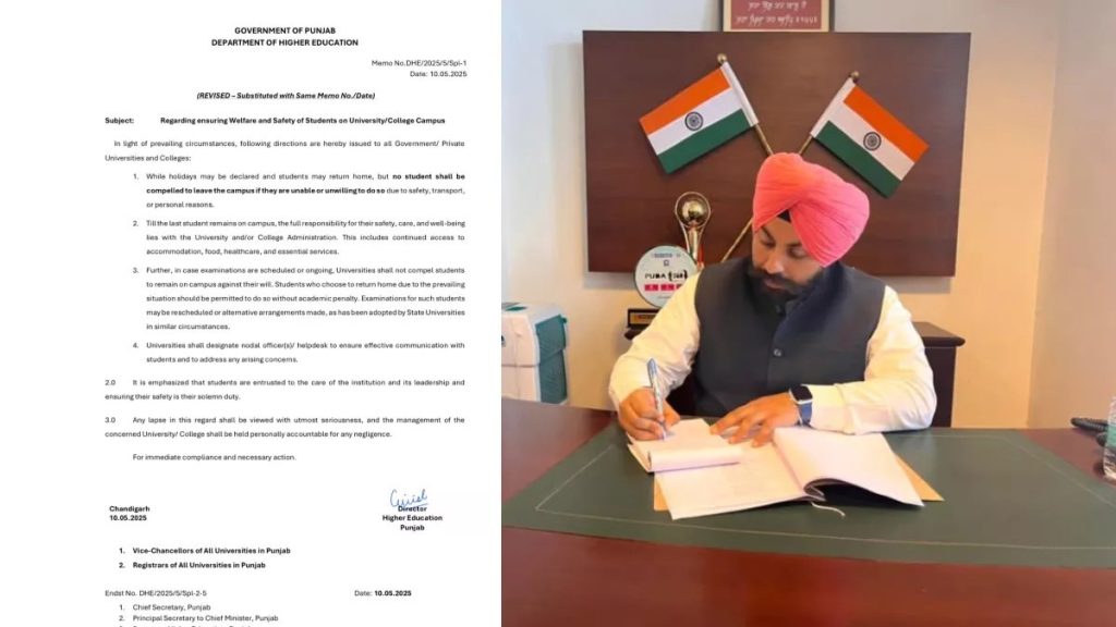 India–Pakistan War: पाकिस्तान की कायराना करतूत के चलते पंजाब में सभी स्कूल और कॉलेज बंद कर दिए गए हैं. ऐसे हालात में कई छात्र अपने घर लौट चुके हैं, लेकिन पंजाब के शिक्षा मंत्री ने स्पष्ट निर्देश दिए हैं कि किसी भी छात्र को परिसर छोड़ने के लिए मजबूर न किया जाए.