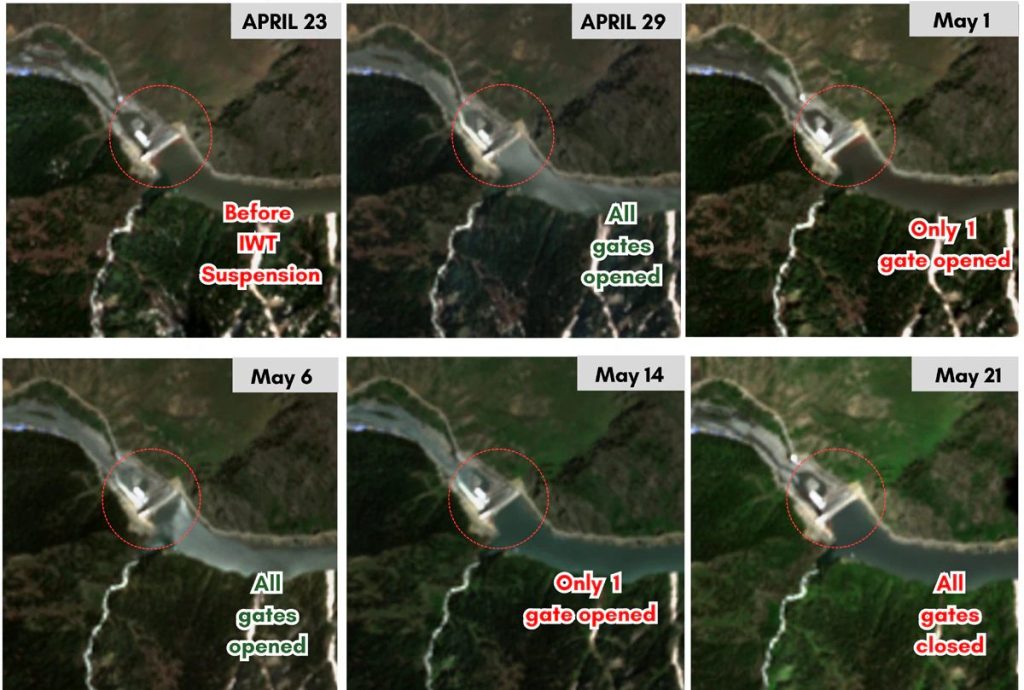 वहीं झेलम नदी पर पाकिस्तान के मंगला डैम में पानी का स्तर बहुत ज्यादा नहीं बदला, लेकिन कुछ समय के लिए पानी का बहाव बढ़ा हुआ दिखा। यह भारत के ऊपरी डैम से फ्लशिंग की वजह से हो सकता है। (नीचे की तस्वीर)