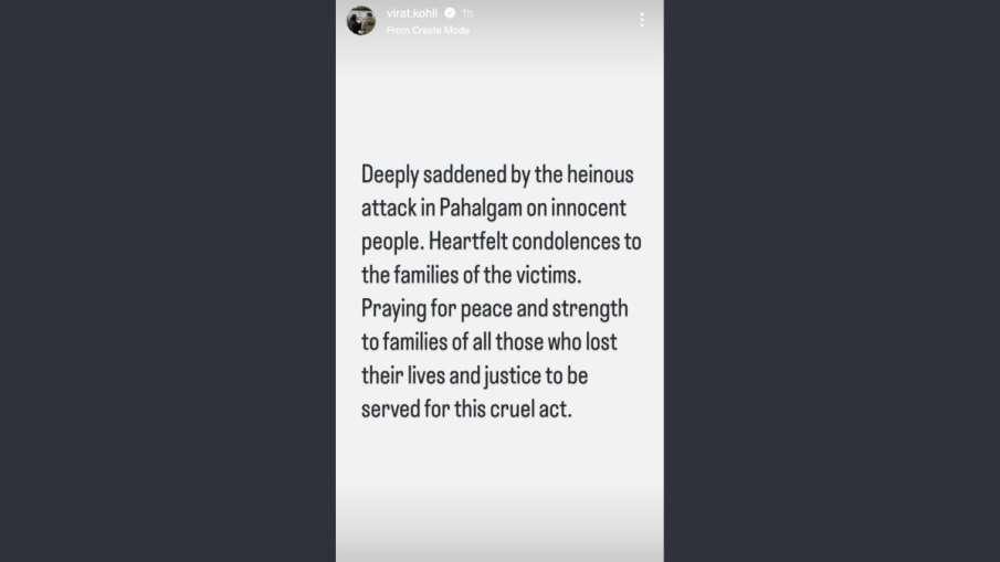 हमले के बाद भारतीय क्रिकेटर्स ने भी सोशल मीडिया पर अपनी भावनाएं जाहिर की हैं। विराट कोहली ने इंस्टा स्टोरी में लिखा, “पहलगाम में निर्दोष लोगों पर हुए जघन्य हमले से मैं बहुत दुखी हूं, पीड़ित परिवारों के प्रति हार्दिक संवेदना व्यक्त करता हूं, उन सभी लोगों के परिवारों के लिए शांति और शक्ति की प्रार्थना करता हूं, जिन्होंने अपनी जान गंवाई है और इस क्रूर कृत्य के लिए न्याय की कामना करता हूं।”