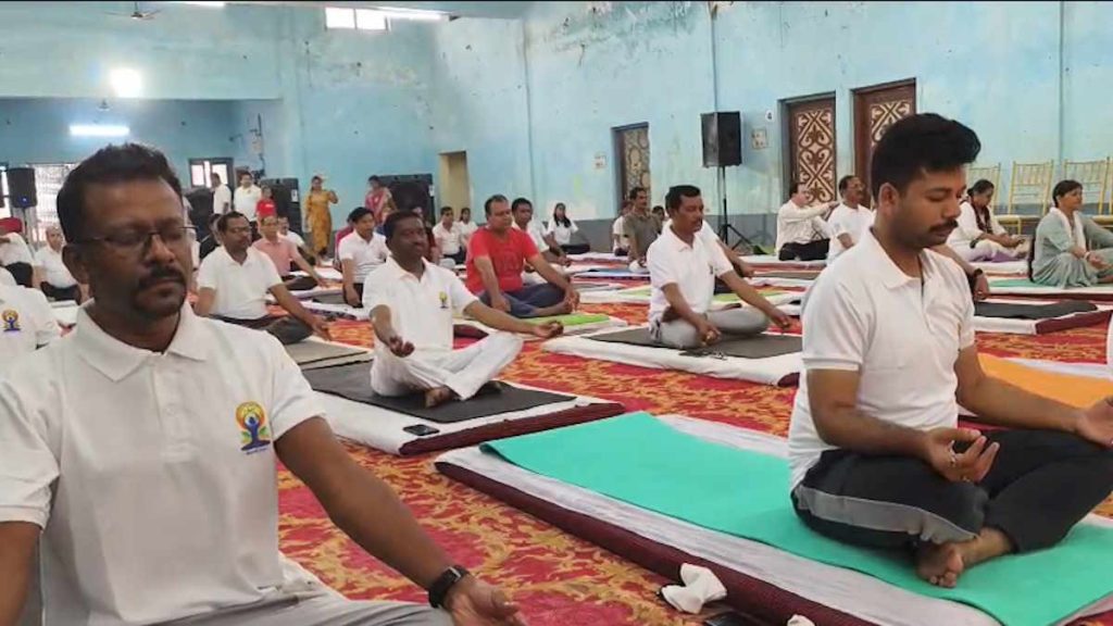 अंतरराष्ट्रीय योग दिवस पर रायपुर स्थित इंदिरा गांधी कृषि विश्वविद्यालय के कृषि मण्डपम में एक पृथ्वी, एक स्वास्थ्य थीम के तहत आयोजित कार्यक्रम में राज्यपाल रमेन डेका के साथ बड़ी संख्या में लोग शामिल होने पहुँचे. स्कूली छात्र-छात्राएँ, विभिन्न संगठनों के कर्मचारी, दिव्यांगजन और ट्रांसगेंडर समुदाय के लोगों ने सामूहिक योगाभ्यास किया.