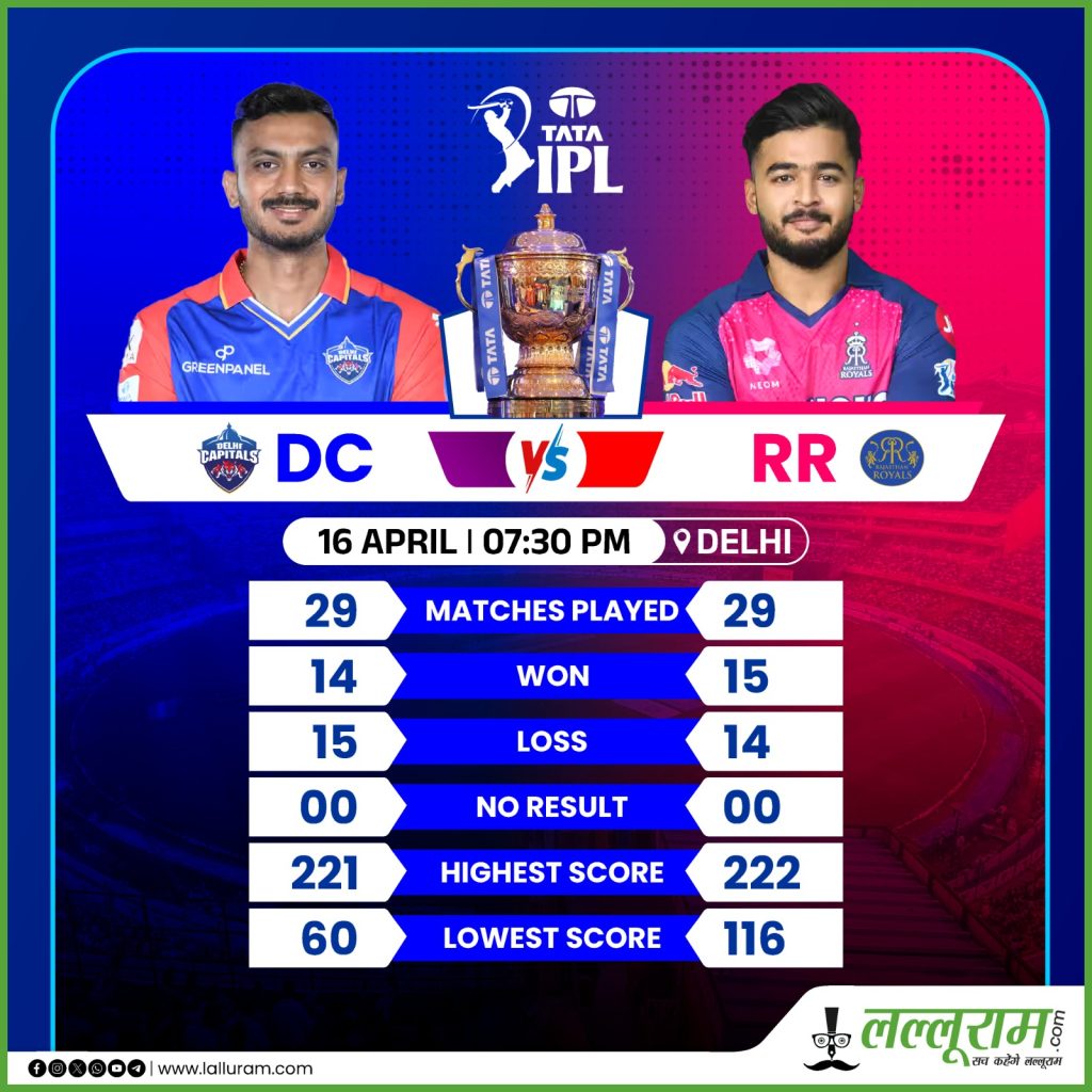 अक्षर पटेल की कप्तानी वाली DC इस सीज़न की सबसे सफल टीम है, उसने अब तक खेले गए 5 में से 4 मुकाबले में जीत दर्ज की है और 8 पॉइंट्स के साथ पॉइंट्स टेबल पर गुजरात टाइटंस (GT) के बाद दूसरे स्थान पर है। जबकि RR का इस सीज़न में कुछ खास प्रदर्शन नहीं रहा है। उसे अब तक खेले गए 6 में से सिर्फ 2 मुकाबले जीतने में सफलता मिली है और 4 पॉइंट्स के साथ पॉइंट्स टेबल पर आठवें स्थान पर मौजूद है। दोनों टीमों को अपने पिछले मुकाबले में हार का सामना करना पड़ा था। ऐसे में आज दोनों टीमों की नजर इस मैच को जीतकर वापसी पर होगी।
