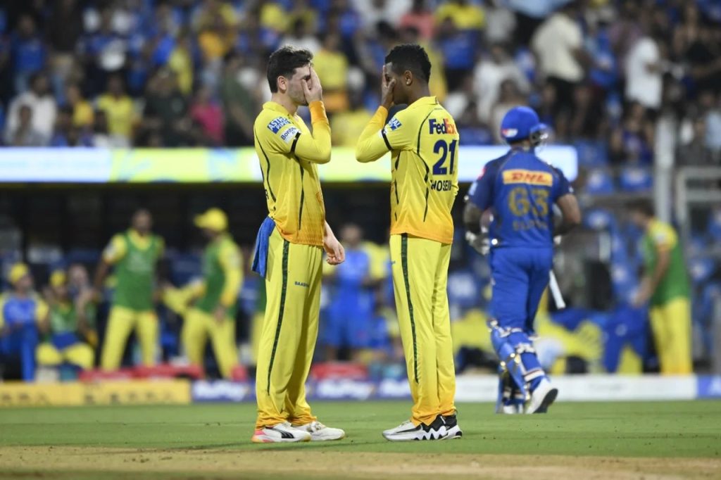 चेन्नई की ओर से अकील हुसैन ने घातक गेंदबाजी करते हुए 4 विकेट झटके। उनके अलावा नूर अहमद ने 2 विकेट हासिल किए, जबकि अंशुल कंबोज, मुकेश चौधरी, जेमी ओवरटन, गुरजपनीत सिंह ने 1-1 विकेट लिये।