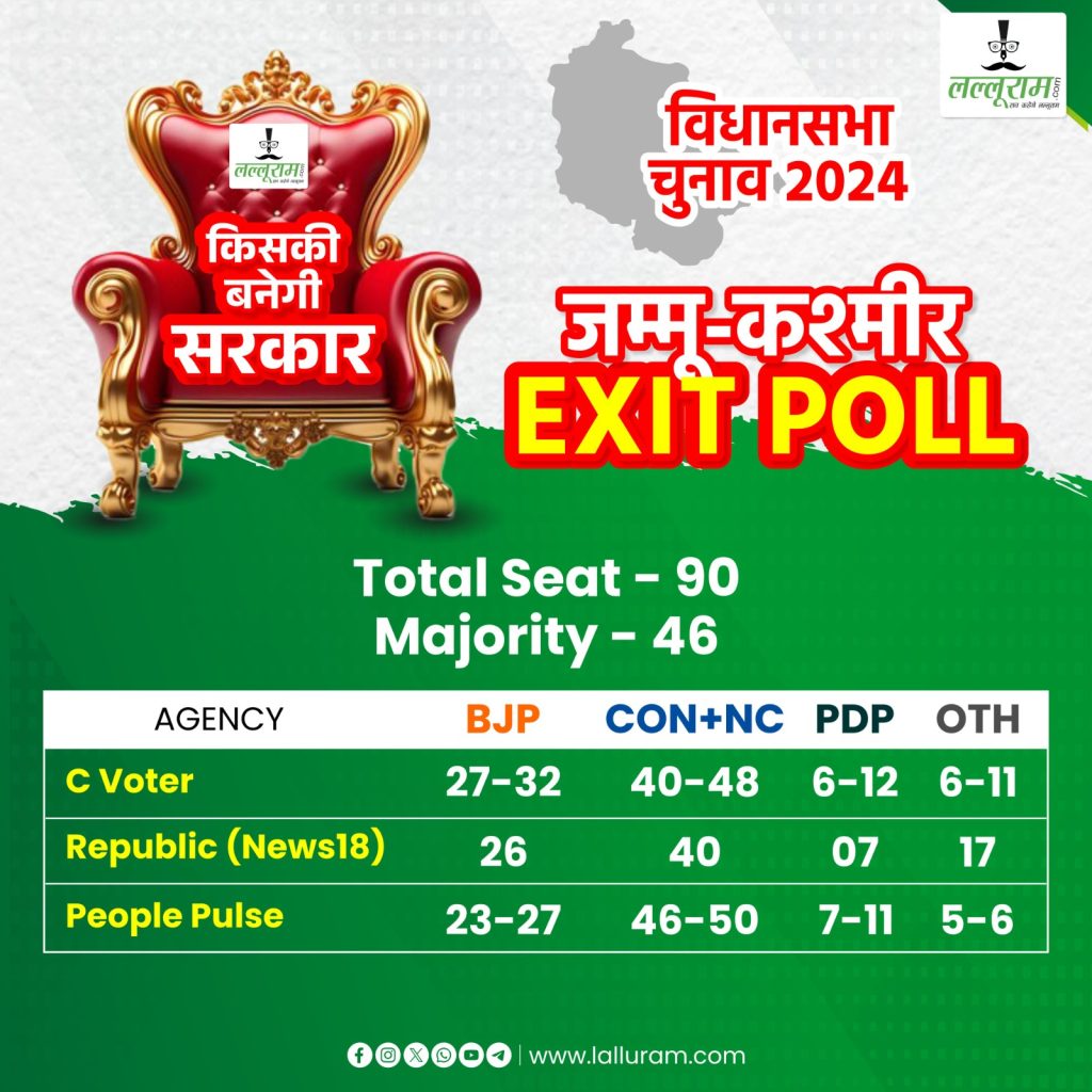 एग्जिट पोल में बन रही नेशनल कॉन्फ्रेंस और कांग्रेस गठबंधन की सरकार