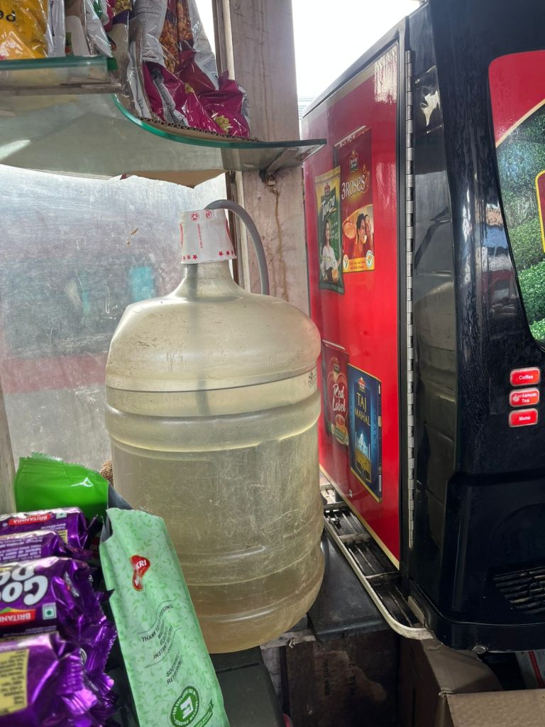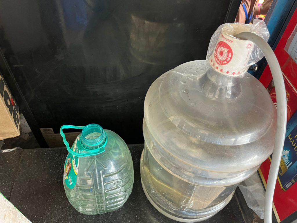 लल्लूराम डॉट कॉम की पड़ताल में ये बात सामने आई कि प्लास्टिक के बड़े केन के बाजू में एक 5 लीटर की महीनों पुरानी पानी की बोतल रखी होती है. उसमें भी पानी भरकर रखा जाता है और बड़ी केन खाली होने के बाद उस पानी को भरा जाता है. एक स्टॉल में तो ये पानी की बोतल खुली पड़ी मिली.