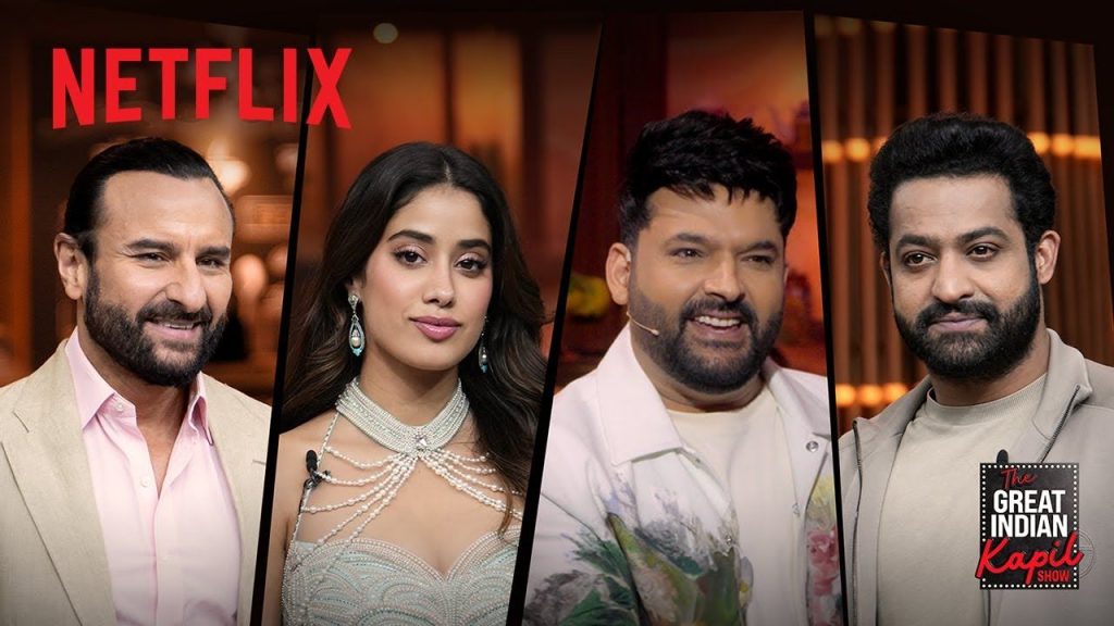 फिल्म ‘देवरा: पार्ट 1’ (Devra: Part 1) 27 सितंबर को सिनेमाघरों में रिलीज हो रही है. इसी बीच कपिल शर्मा (Kapil Sharma) के शो ‘द ग्रेट इंडियन कपिल शो’ पर इसकी स्टारकास्ट की टीम पहुंच गई है. जूनियर एनटीआर (Jr NTR), सैफ अली खान (Saif Ali Khan) और जान्हवी कपूर (Janhvi Kapoor) वाले एपिसोड का प्रोमो भी नेटफ्लिक्स ने जारी कर दिया है. नेटफ्लिक्स ने अपने यूट्यूव पर एपिसोड का 1 मिनट 39 सेकेंड का वीडियो शेयर किया है. ये वीडियो काफी मजेदार है और इससे पता चलता है कि कपिल के शो का यह एपिसोड काफी धमाकेदार होने वाला है.