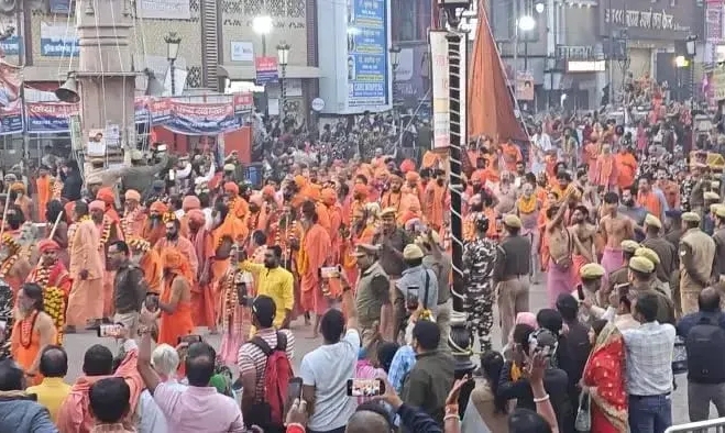 वाराणसी. महाशिवरात्रि (Mahashivratri 2025) पर काशी में भक्तों की भारी भीड़ है. बाबा विश्वनाथ के दर्शन को सैलाब उमड़ पड़ा है. इस बीच आज काशी में 10 हजार से ज्यादा नागा साधुओं की टोली पहुंची. ये जूना अखाड़े की पेशवाई है. जिसमें इतनी बड़ी संख्या में नागा साधु शामिल हुए हैं. सभी बाबा विश्वनाथ के दर्शन के लिए पहुंचे हैं. इस मौके पर जिला प्रशासन की ओर से नागा साधुओं का माला पहनाकर स्वागत किया गया.