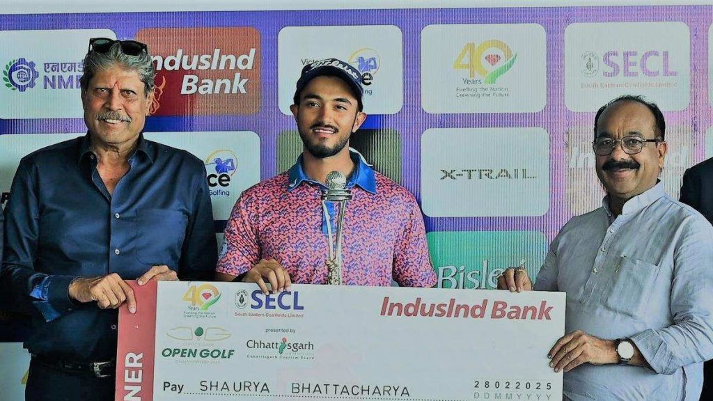 एसईसीएल छत्तीसगढ़ ओपन गोल्फ चैंपियनशिप का खिताब दिल्ली के शौर्य भट्टाचार्य ने 249 के स्कोर के साथ अपने नाम किया और एक करोड़ रुपये की इनामी राशि प्राप्त की। उपमुख्यमंत्री अरुण साव ने शौर्य भट्टाचार्य का हौसला बढ़ाते हुए उन्हें जीत की बधाई दी और इनामी राशि का चेक प्रदान किया। इस अवसर पर PGTI के अध्यक्ष कपिल देव, साउथ ईस्टर्न कोलफील्ड्स लिमिटेड (SECL), बिलासपुर के डायरेक्टर (पर्सनल) बिरांची दास उपस्थित थे।