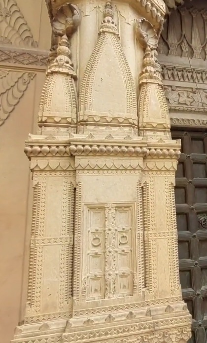 गर्भगृह के दोनों ओर दो गोमुख मौजूद हैं, जिनके माध्यम से अनुष्ठानों के दौरान चढ़ाया जाने वाला दूध, पानी गर्भगृह से बाहर लाया जाता है। गर्भगृह के पीछे बाईं ओर मौजूद भित्तिस्तंभ के निचले हिस्से पर एक टूटा हुआ कीर्तिमुख मौजूद है। इस मंदिर में पंचदेव की स्थापना के साथ ही शिवपरिवार समेत नंदी को भी विराजमान कराया गया था। निर्माण से संबंधित शिलापट्ट भी परिसर में आज भी हैं। कहा जाता है इसके एक-एक स्तंभ बनाने में 6 मीने का समय लगा था।