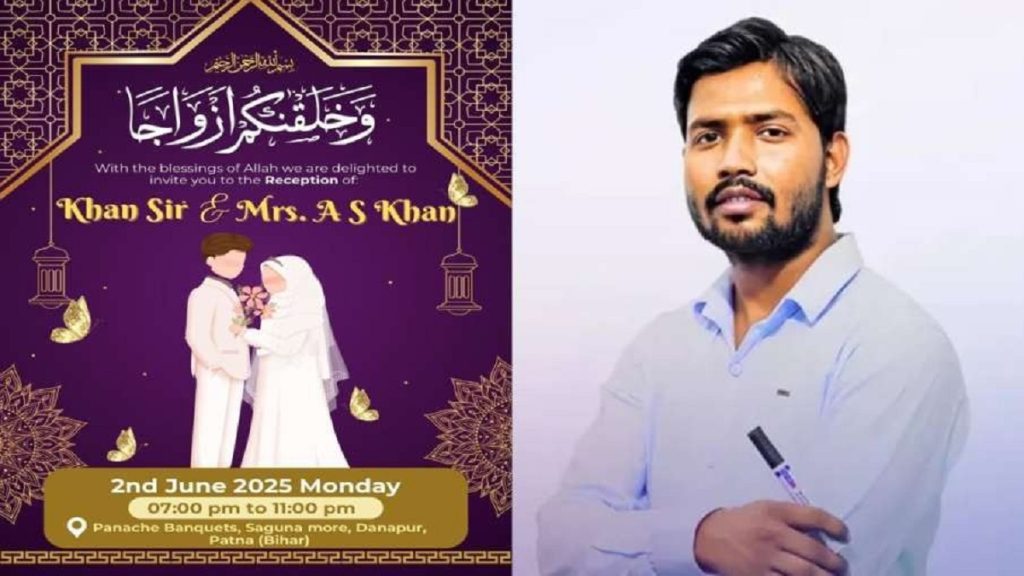 Khan Sir Marriage: बिहार के मशहूर शिक्षक और यूट्यूब स्टार ‘खान सर’ (फैजल खान) के शादी की खबर ने सोशल मीडिया पर तहलका मचा रखा है. दरअसल एक लाइव क्लास के दौरान खुद खान सर ने इस बात का खुलासा किया कि उन्होंने भारत-पाकिस्तान युद्ध के दौरान निकाह कर लिया है. खान सर ने बताया कि, 2 जून 2025 को पटना में उनका रिसेप्शन होगा, और 6 जून 2025 को अपने छात्रों के लिए एक भोज का आयोजन करेंगे.