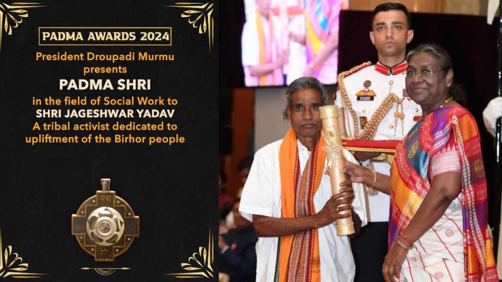 नितिन नामदेव, रायपुर। जशपुर जिले के बिरहोर ग्राम के “भाई” के नाम से मशहूर जागेश्वर यादव को 26 जनवरी को 2024 को राष्ट्रपति द्रोपति मुर्मू ने पद्मश्री अवार्ड सम्मान से किया था. बिरहोर में जागेश्वर यादव ने आदिवासियों के उत्थान के कई बड़े काम किए थे. जिसके लिए उन्हें ये सम्मान मिला. जागेश्वर यादव ने लल्लूराम.कॉम से खास बातचीत में कहा कि मैंने सपना में भी नहीं सोचा था कि मुझे पद्मश्री मिलेगा. इसे भी पढ़ें : छत्तीसगढ़ स्टेट पाॅवर कंपनीज के नवनियुक्त अध्यक्ष डाॅ. रोहित यादव पहुंचे स्टेट लोड डिस्पैच सेंटर…