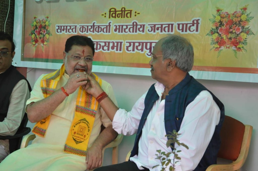 सुनील सोनी को टिकट मिलने के बाद सांसद बृजमोहन ने दी बधाई, देंखे Video