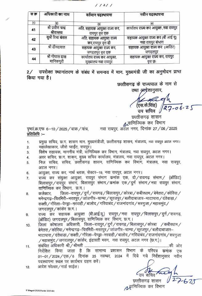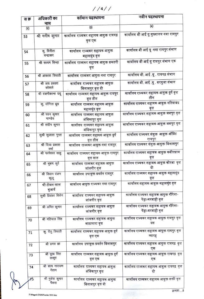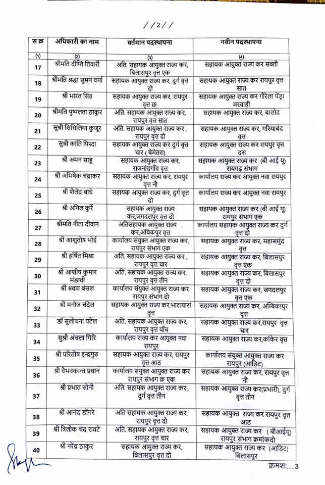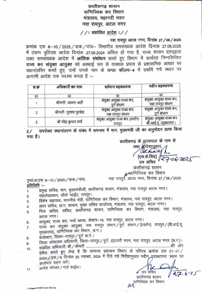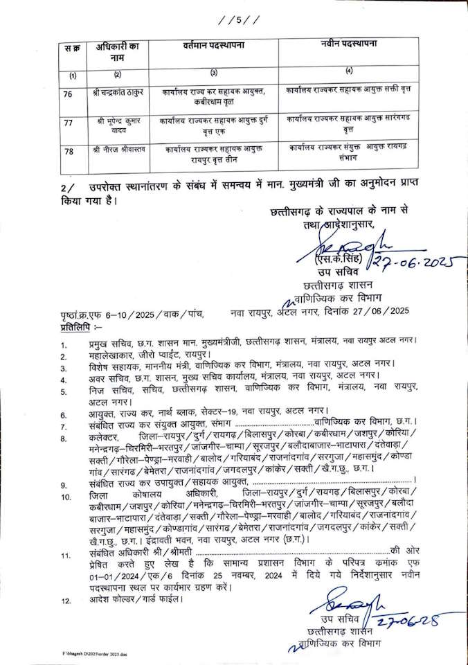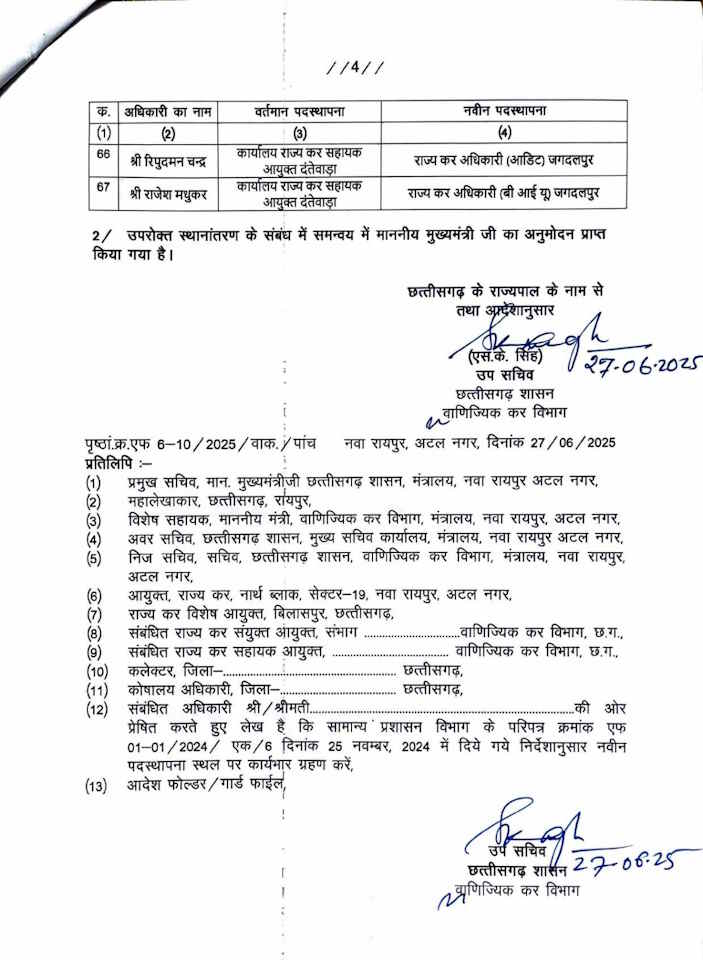 जारी आदेश में राज्य कर उपायुक्त के अलावा राज्य कर संयुक्त आयुक्त, राज्य कर सहायक आयुक्त, राज्य कर निरीक्षक एवं राज्य कर अधिकारियों का तबादला किया गया है.