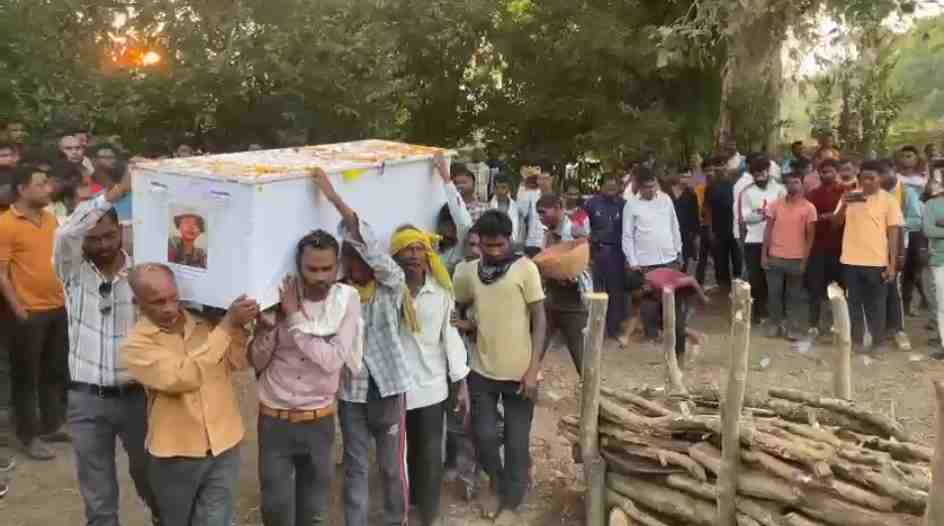 सुशील सलाम, कांकेर. नारायणपुर में पदस्थ प्रधान आरक्षक बीरेंद्र कुमार सोरी बुधवार को पुलिस-नक्सली मुठभेड़ में शहीद हो गया. आज उनके पार्थिव शरीर को गृह ग्राम मरारपानी, नरहरपुर लाया गया. शहीद का शव पहुंचते ही पूरा गांव गमगीन हो गया. इस दौरान भारत माता की जय, शहीद बीरेंद्र कुमार अमर रहे के नारों से पूरा गांव गूंज उठा. ग्रामीणों और स्कूली छात्रों ने शहीद जवान पर फूलों की वर्षा कर नम आंखों से उन्हें अंतिम विदाई दी.