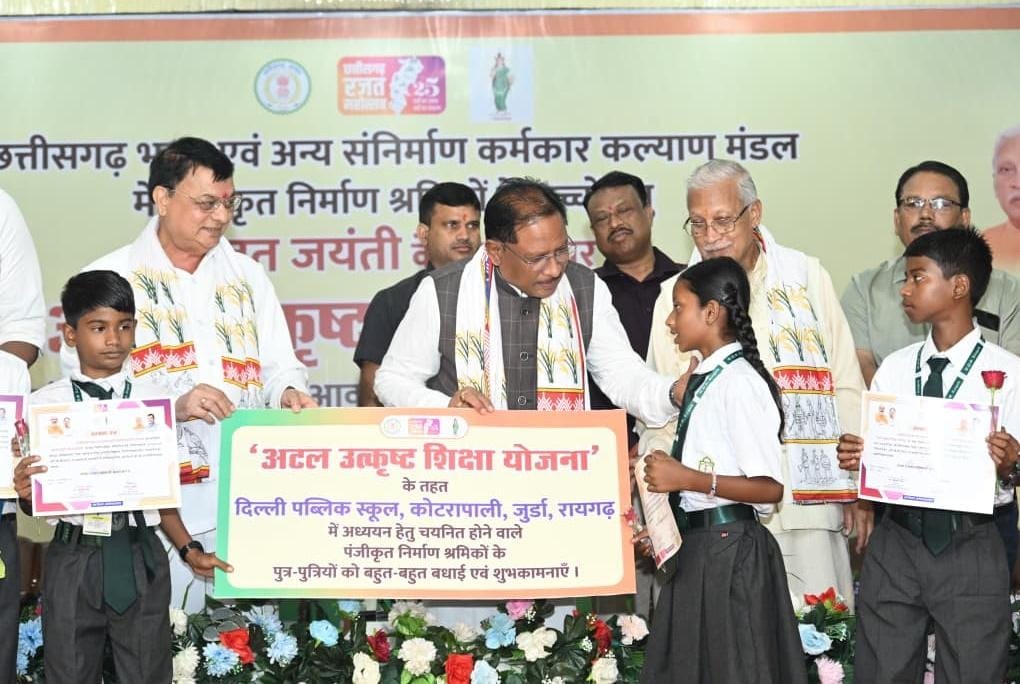 इस अवसर पर मुख्यमंत्री साय ने कहा कि अटल उत्कृष्ट शिक्षा योजना से निर्माण श्रमिकों के बच्चों के लिए बेहतर शिक्षा का मार्ग प्रशस्त हुआ है। मुख्यमंत्री साय ने घोषणा की कि अगले शैक्षणिक सत्र से इस योजना का लाभ 200 बच्चों को मिलेगा।