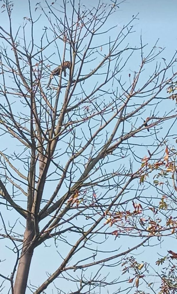उवेश रहमान, बहराइच. कतर्निया वन्यजीव प्रभाग (Katarnia Wildlife Division) अंतर्गत सुजौली रेंज के जंगल गुलहरिया गांव के मजरे धर्मपुर रेतिया में मंगलवार को एक अनोखा नजारा देखने को मिला. गांव के पास स्थित घने जंगल में एक तेंदुआ सेमल के पेड़ पर मस्ती में लेटा हुआ नजर आया. इस दृश्य को देखकर ग्रामीणों में उत्सुकता हुई और देखते ही देखते बड़ी संख्या में लोग तेंदुए को देखने के लिए जुट गए.