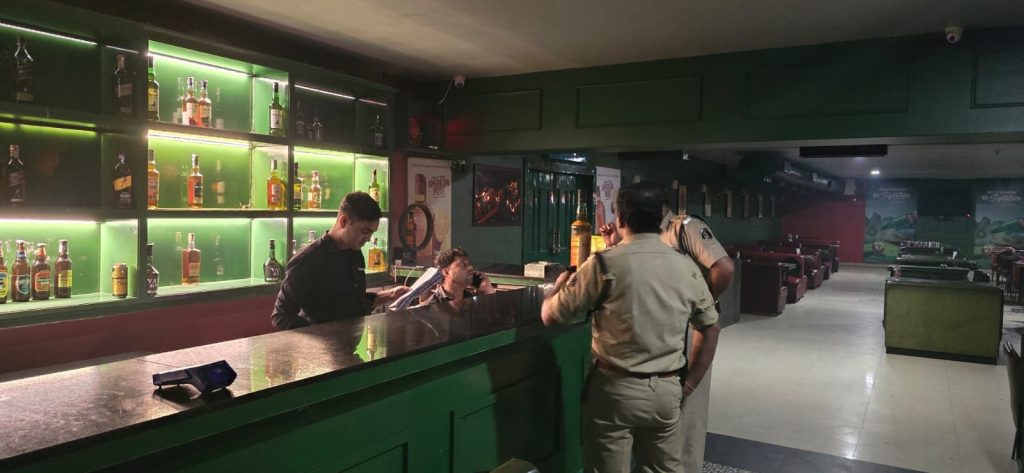 सिविल लाइन सीएसपी निमितेश सिंह के नेतृत्व टीआई प्रदीप आर्या और स्टाफ के साथ सिटी 36 माल स्थित तंत्रा बार और टेलीफोन एक्सचेंज रोड स्थित हैवंस पार्क में आकस्मिक जांच की। इस दौरान पुलिस को देखकर जाम छलकाने वालों में हड़कंप मच गया। पुलिस की टीम ने संदिग्ध लोगों की जांच की और बार संचालक व मैनेजर को नियमानुसार समय में बार बंद करने निर्देश दिया।