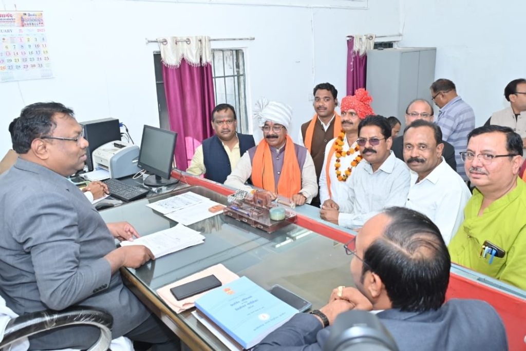 संदीप सिंह ठाकुर, लोरमी। मुंगेली जिले के लोरमी में नगर पालिका चुनाव को लेकर आज प्रदेश के उपमुख्यमंत्री और नगरीय प्रशासन मंत्री अरुण साव के नेतृत्व में बीजेपी के अध्यक्ष प्रत्याशी सुजीत वर्मा सहित 18 पार्षद प्रत्याशियों ने आज गर्मजोशी के साथ नामांकन दाखिल किया है. इस दौरान नगर के फव्वारा चौक से लेकर एसडीएम कार्यालय तक रैली के रूप में बाजे-गाजे के साथ भारतीय जनता पार्टी के प्रत्याशियों ने आम लोगों से आशीर्वाद लेते हुए नामांकन भरने के लिए पहुंचे. जहां उपमुख्यमंत्री साव की मौजूदगी में 18 पार्षद सहित अध्यक्ष प्रत्याशी ने अपना नामांकन दाखिल किया. जहां बड़ी संख्या में स्थानीय लोग भी इस नामांकन रैली में शामिल हुए.